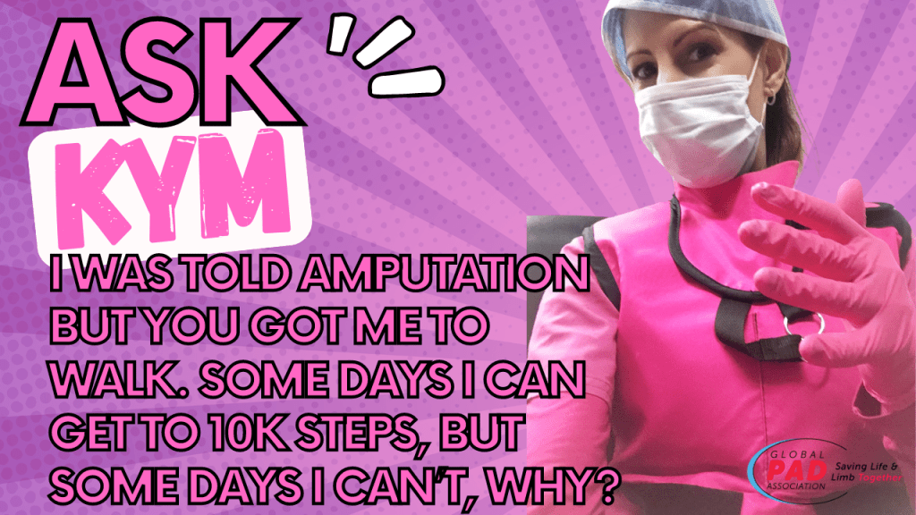 Ask Kym is a series featuring the founder of the Global PAD Association and real patients sharing their individual experiences and asking questions. Individual results may vary, patient testimonials are not claimed to represent typical results or guarantee that anyone will achieve the same or similar results. Kym is not a Doctor or Clinician so she is not offering medical advice. She is only speaking from her experience on the frontlines observing hundreds of doctors perform thousands of hours of procedures globally to treat blocked arteries in the legs and the heart. This series is for educational purposes only and any advice offered is not a substitute for medical advice from your own supervising physician. Do not act on any information provided in this series without the explicit consent from your healthcare team. For information on vascular diseases and real-time advocacy and support, go to http://www.PADhelp.org or call (415) 320-7138.